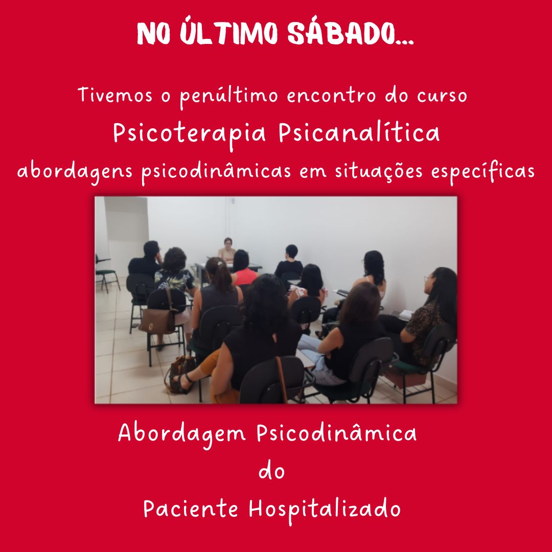No último sábado,  no décimo encontro do Curso "Psicoterapia Psicanalítica abordagens psicodinâmicas em situações específicas: fundamentos teóricos e técnicos / manejo clínico", contamos com a sensibilidade da Psicóloga Ana Luísa Carvalho Guimarães, para conversar sobre o atendimento psicodinâmico do paciente com dor. Agradecemos por estar conosco conversando com tanta delicadeza sobre o tema!
